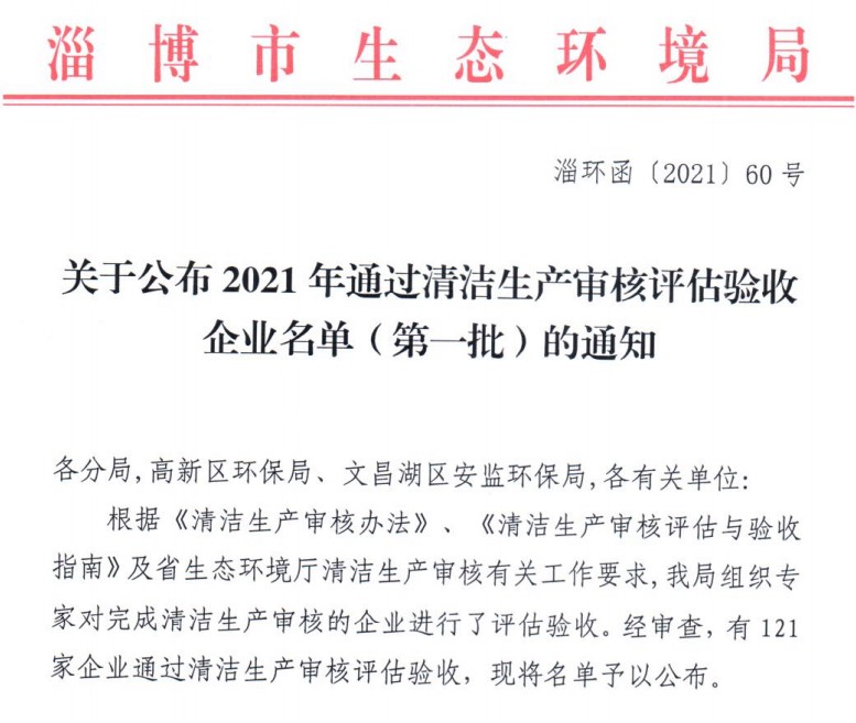 - 2021年通過(guò)清潔生產(chǎn)審核評(píng)估驗(yàn)收