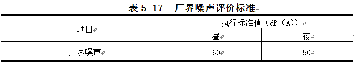 噪聲執(zhí)行標(biāo)準(zhǔn)限值見表5-17。