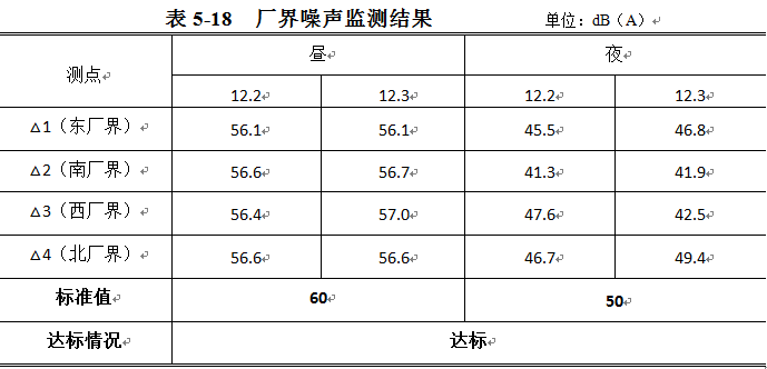 廠界噪聲監(jiān)測結(jié)果見表5-18。