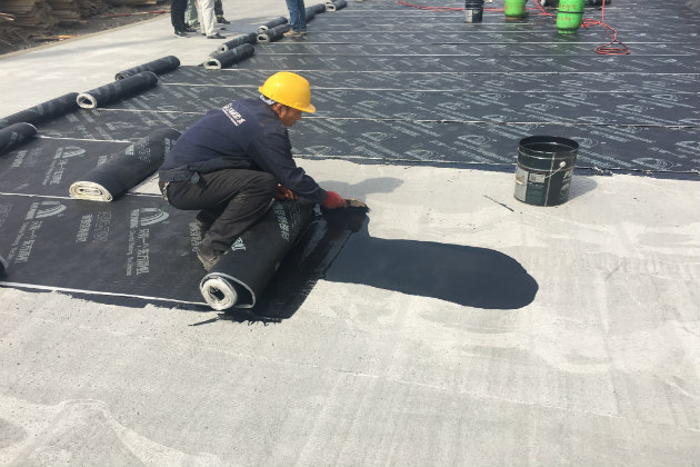 在粘鋪卷材時,應(yīng)隨時注意與基準(zhǔn)線對齊,以免出現(xiàn)偏差難以糾正。卷材鋪貼時,卷材不得用力拉伸。粘貼后,隨即用壓輥從卷材中部向兩側(cè)滾壓,排出空氣,使卷材牢固粘貼在基層上,卷材背面搭接部位的隔離紙不要過早揭掉,以免污染粘結(jié)層或誤粘。